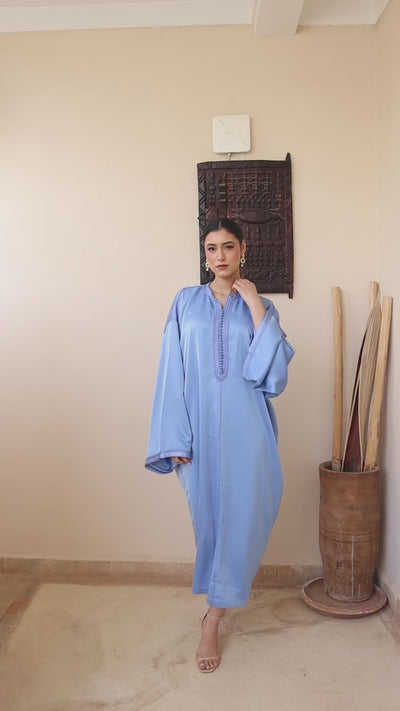 Jellaba Satin Duchesse Bleue